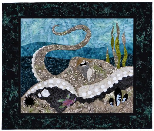 Join me and make this Majestic Octopus. Learn how to trace out the pattern pieces, fuse and arrange the pieces to create this design. Then, how to finish up with applique and quilting. Octopi is not your choice; choose another pattern from the Along the Shore collection. Pick up your supply list and get your supplies at the store.